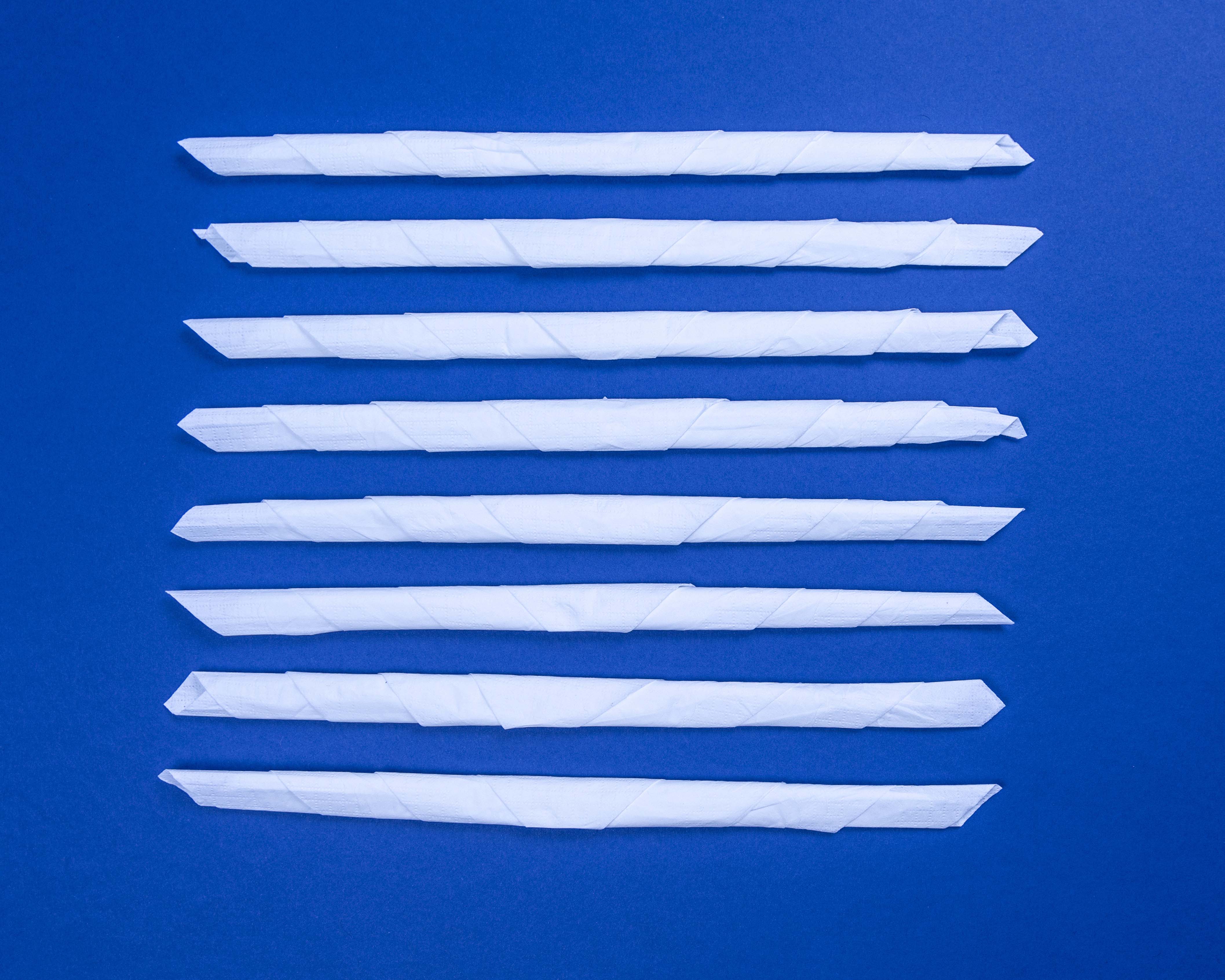 Piega allo stesso modo tutti gli altri fazzoletti. Una volta terminato, appiattisci i tuoi bigodini fai da te facendo pressione sul piano su cui sono poggiati.
